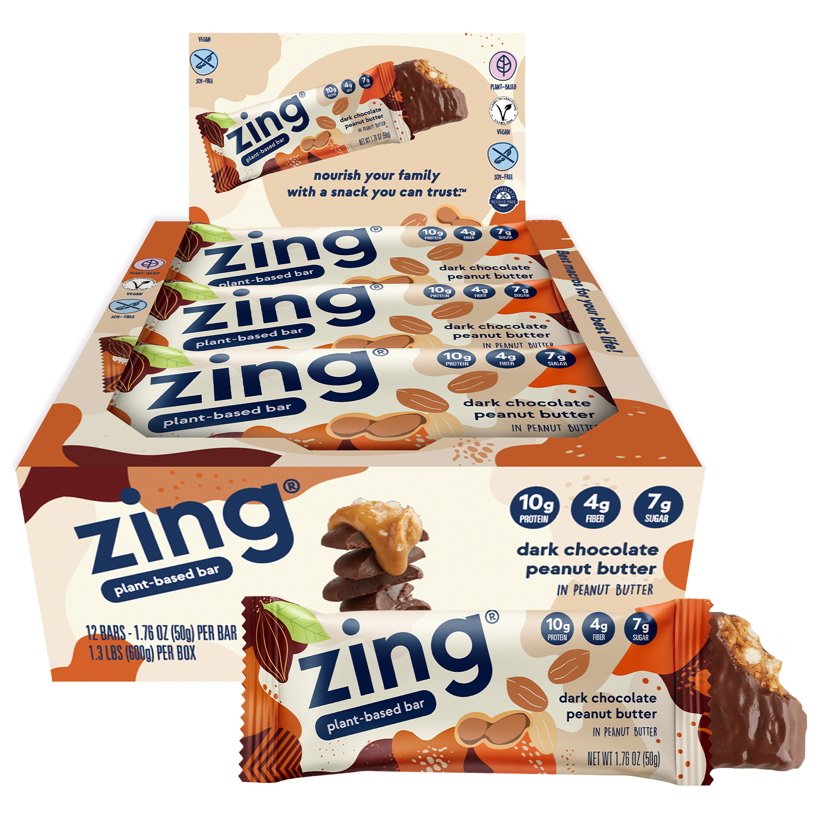 Fuel your performance with Zing Bars' premium dark chocolate peanut butter nutrition bars. This is the bar that tastes like a reward, not a compromise. Rich dark chocolate meets creamy peanut butter in a classic combination that satisfies cravings while delivering the nutrition your body needs.